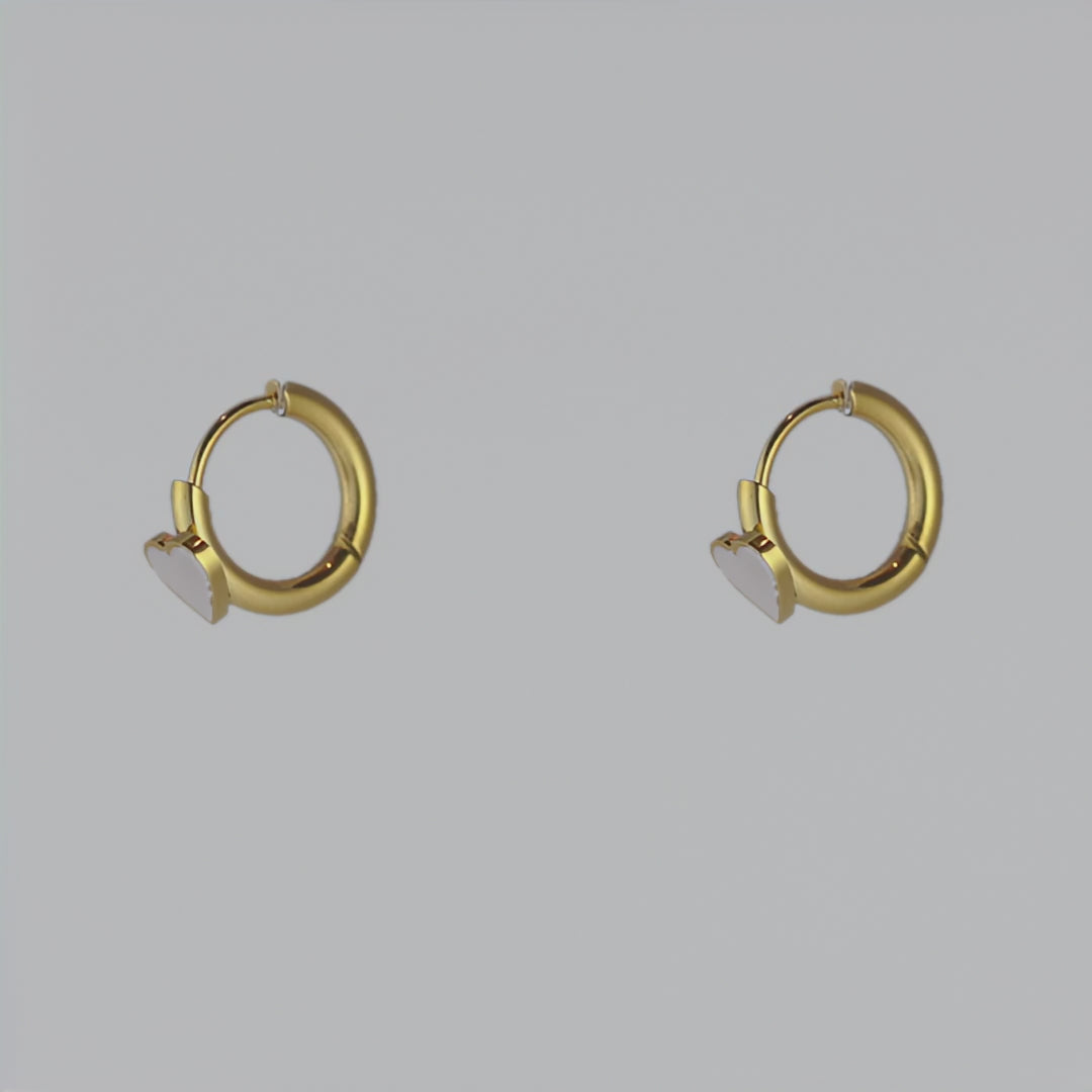 Elevate your style with our White Heart Huggies, a perfect blend of timeless elegance and contemporary charm. These exquisite earrings feature radiant gold hoops adorned with delicate white hearts, creating a sophisticated and versatile accessory for any occasion.